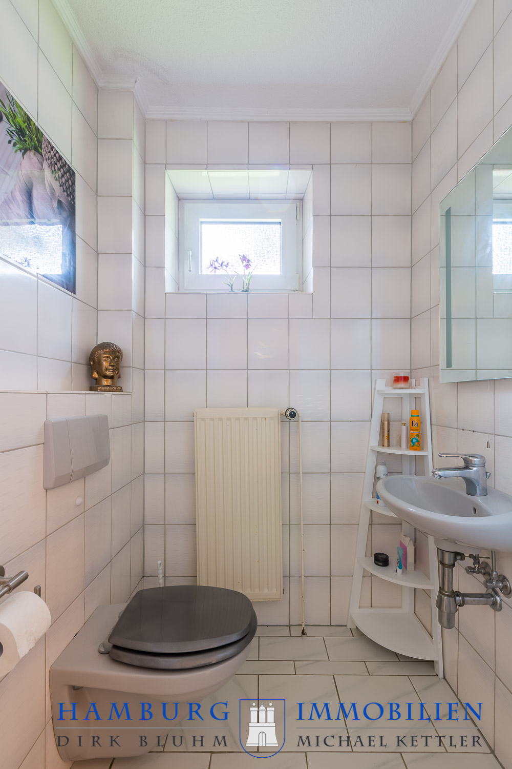 Das Entrée bietet Platz für Ihre Garderobe und den Zugang zum Gäste-WC mit Tageslicht. Hier besteht die Möglichkeit, das WC zu vergrößern und ein Duschbad einzubauen. Ebenfalls vom Flur abgehend kommen Sie in den Hauswirtschaftsraum mit Fenster, der Gasheizung von Vaillant aus dem Jahre 2013 sowie die Anschlüsse für die Waschmaschine und dem Trockner.