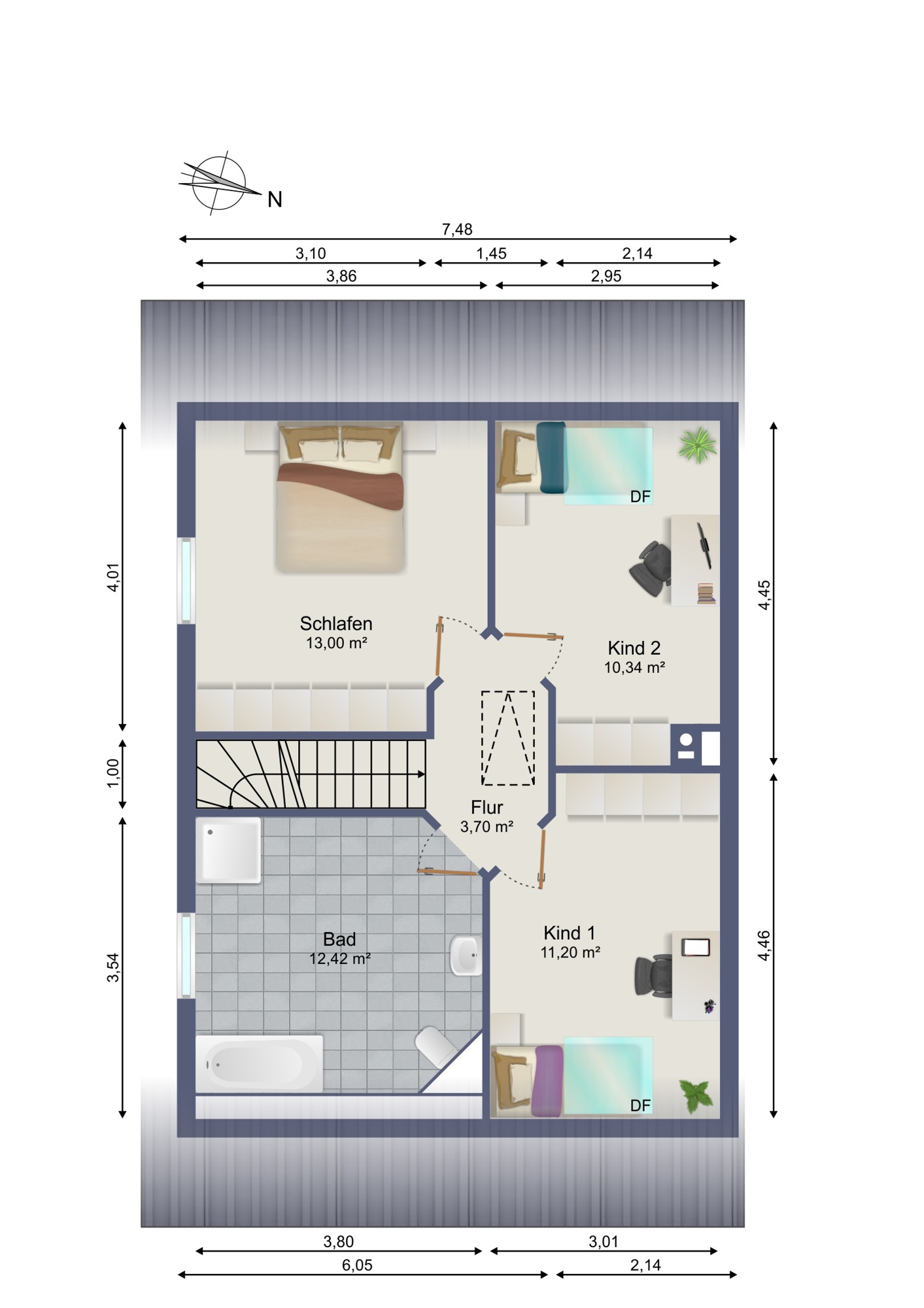 - bodentiefe Fenster im Bereich des Hausgiebels