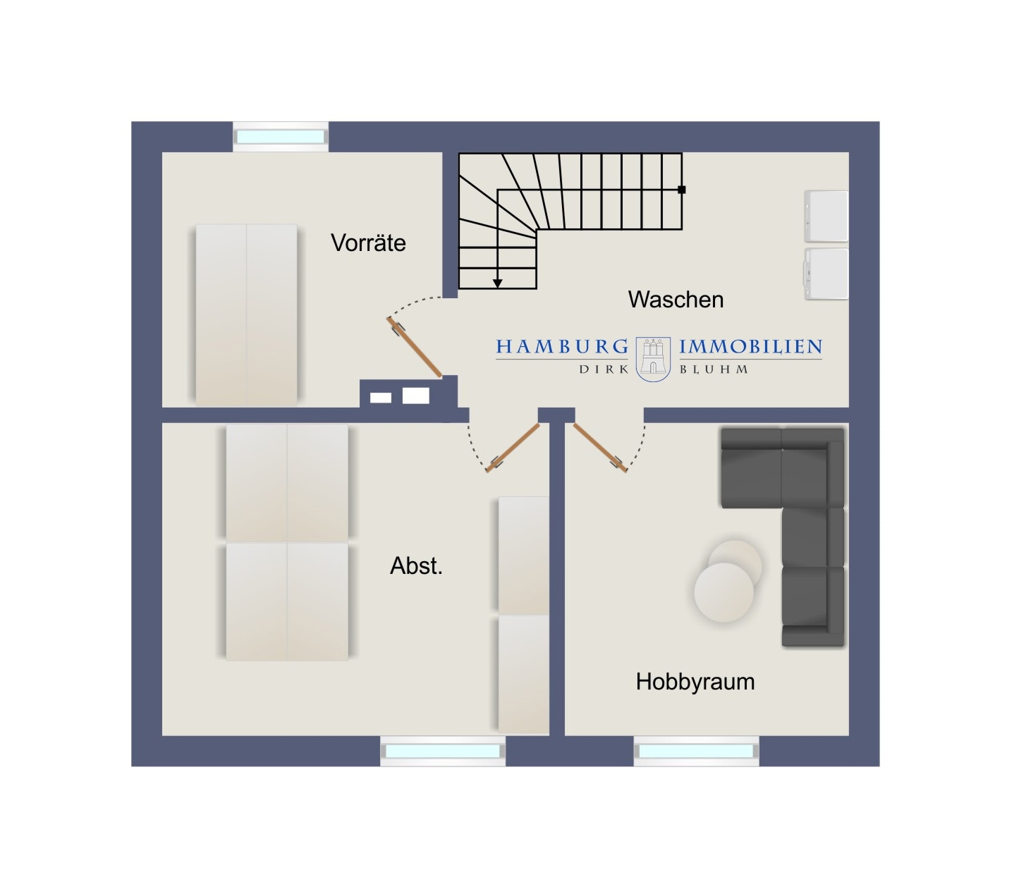 - Untergeschoss mit drei Räumen und Waschmaschinenanschluss