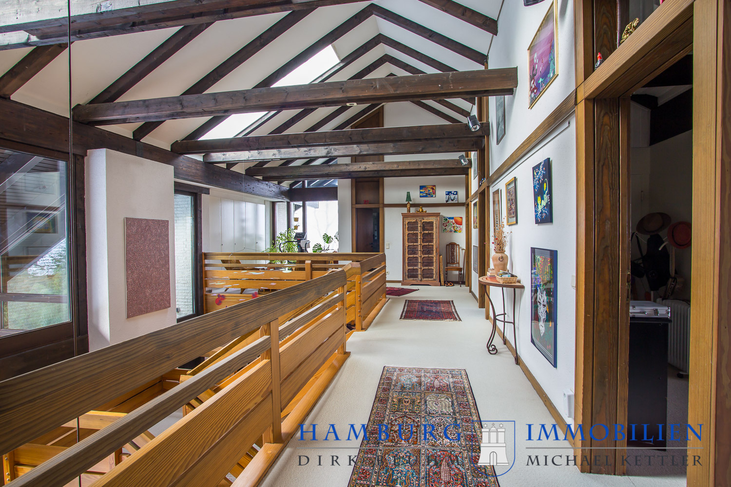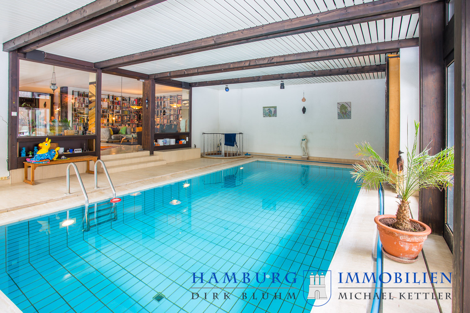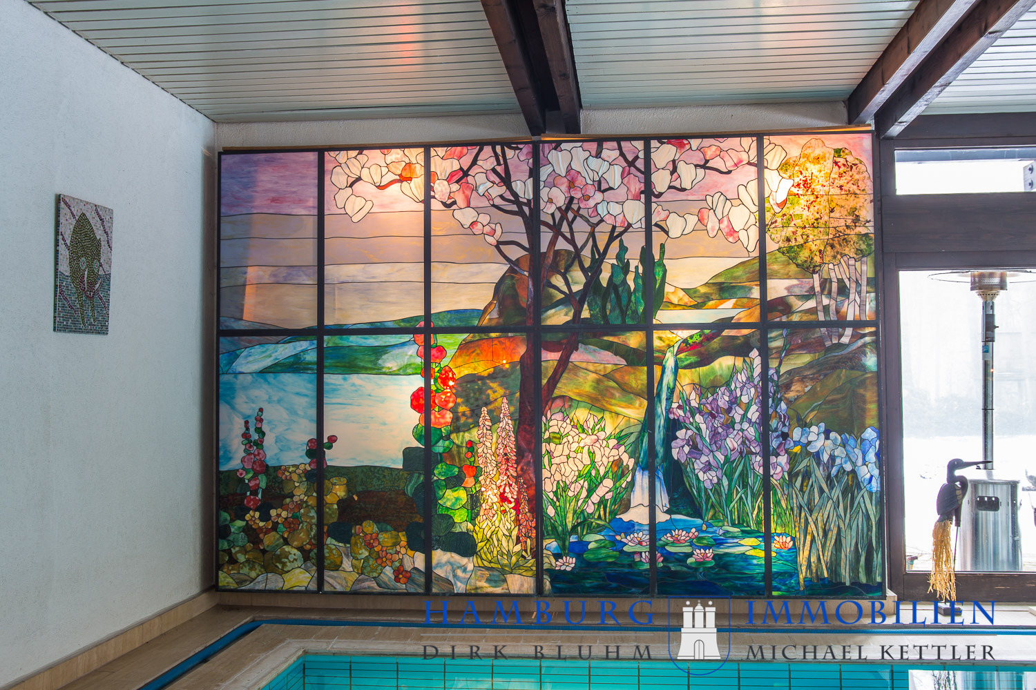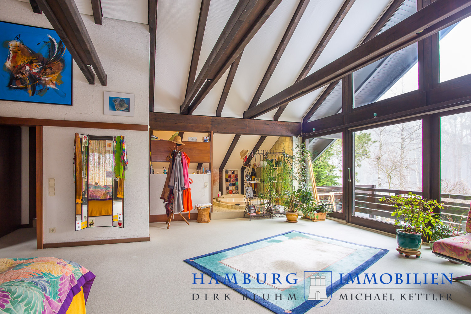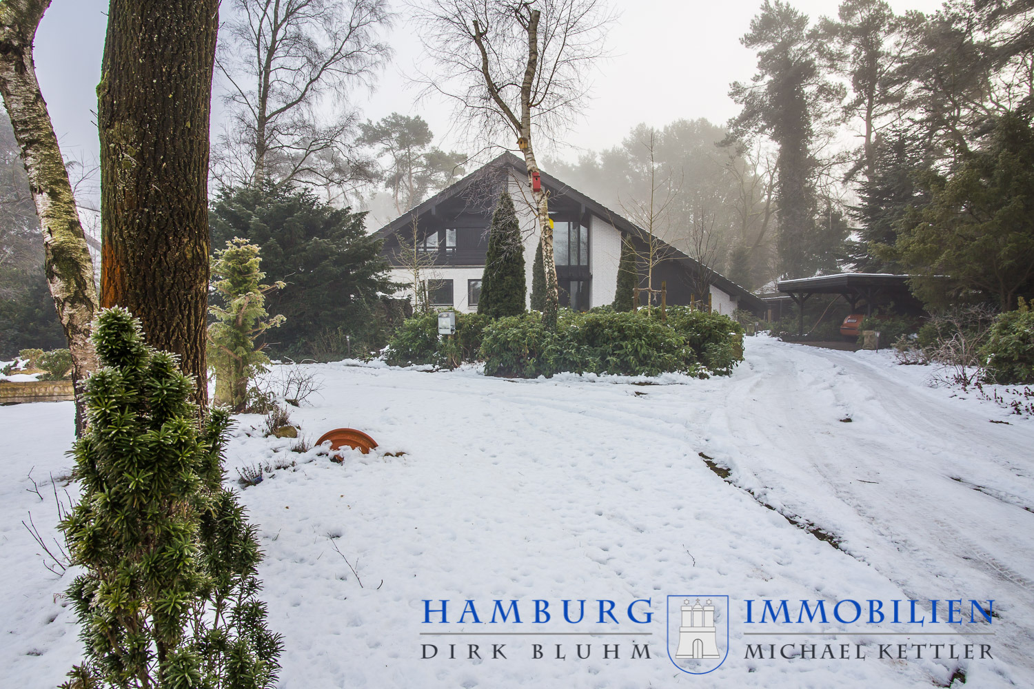 Hier erwerben Sie ein sehr großes Architekten-Landhaus mit unverbaubarem Blick auf das Alster-Landschaftsschutzgebiet (ca. 530 m² Wohn-/Nutzfläche) inklusiv einer Schwimmhalle von ca. 73 m² mit Innenpool mit Gegenstromanlage (ca. 8 x 4 m) und einer ca. 66 m²-2-Zimmer-Einliegerwohnung auf einem ca. 5.300 m² großen teileingezäunten Waldgrundstück.