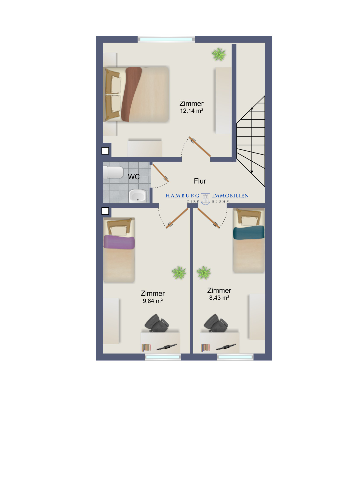 - OG: drei Schlafzimmer mit ca. 12,14, ca. 9,84 und ca. 8,43 m²