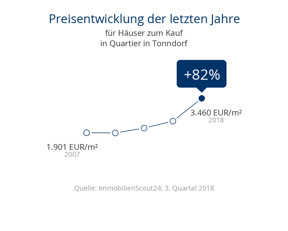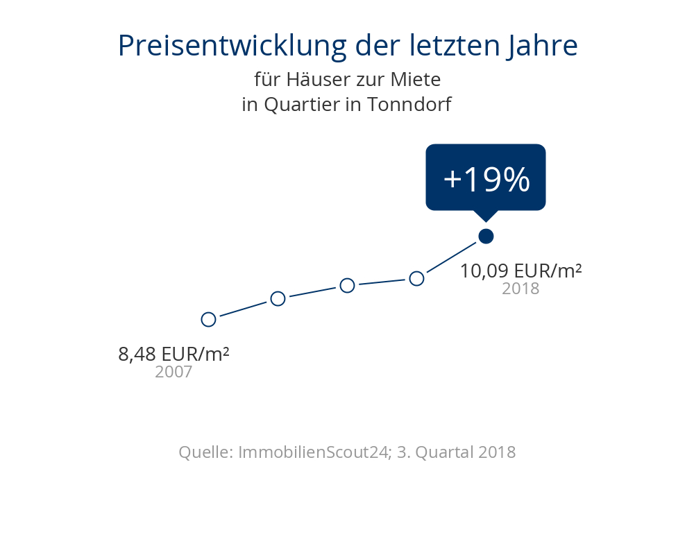 Tonndorf ist ein beliebter Stadteil des Bezirkes Wandsbek. Hier finden Sie zum Beispiel den großen Kupferteich mit seiner Grünanlage oder den Eichtalpark mit seinen attraktiven Wander- und Radfahrwegen. Das Einkaufszentrum "Tondo" sowie die Einkaufszentren Rahlstedt, Farmsen und das Wandsbeker Quarree sind schnell zu erreichen. Die Gastronomie bietet ein vielfältiges kulinarisches Angebot. Besonders beliebt ist das "Cafe del Sol", welches mit seinem mediterranen Flair ein absolutes Restaurant-Highlight ist. Die Eissporthalle Farmsen, das Rahlstedter Schwimmbad sowie ein großes Kino sorgen für abwechslungsreiche Freizeitgestaltung. Durch die Anbindung an diverse Buslinien kann die komplette Stadt sowie das Hamburger Umland stets gut und schnell erreicht werden. Mit der Regionalbahn (R 10) erreichen Sie in nur 11 Minuten den Hamburger Hauptbahnhof. Die familienfreundliche Lage zeichnet sich auch durch das Angebot an Kindergärten, verschiedenen Grund- und weiterführenden Schulen aus. Ärzte, Supermärkte sowie eine Bank sind fußläufig zu erreichen. Des weiteren führt von Tonndorf ein Radfahrweg am Flusslauf Wandse...