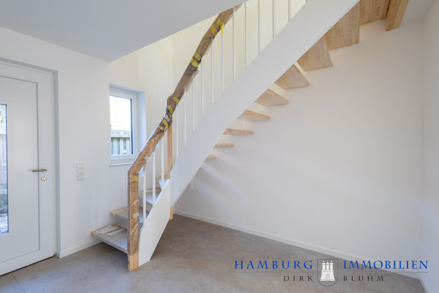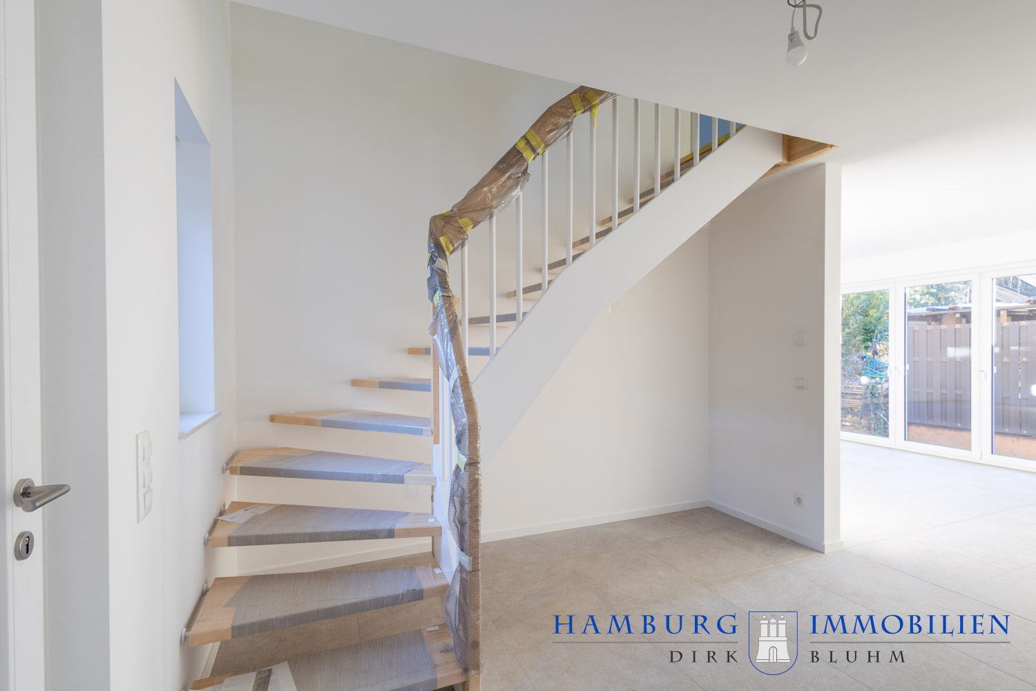 In einer der idyllischsten und ruhigsten Straßen Billstedts entsteht eine hochmoderne, energieeffiziente Doppelhaushälfte, die höchsten Wohnkomfort verspricht. Von Anfang an wurde bei der Planung größter Wert auf zeitgemäßes Wohnen und eine nachhaltige Bauweise gelegt. Dieses Bauprojekt besticht durch seine durchdachten Grundrisse und die harmonische Eingliederung in das friedliche Wohnumfeld.